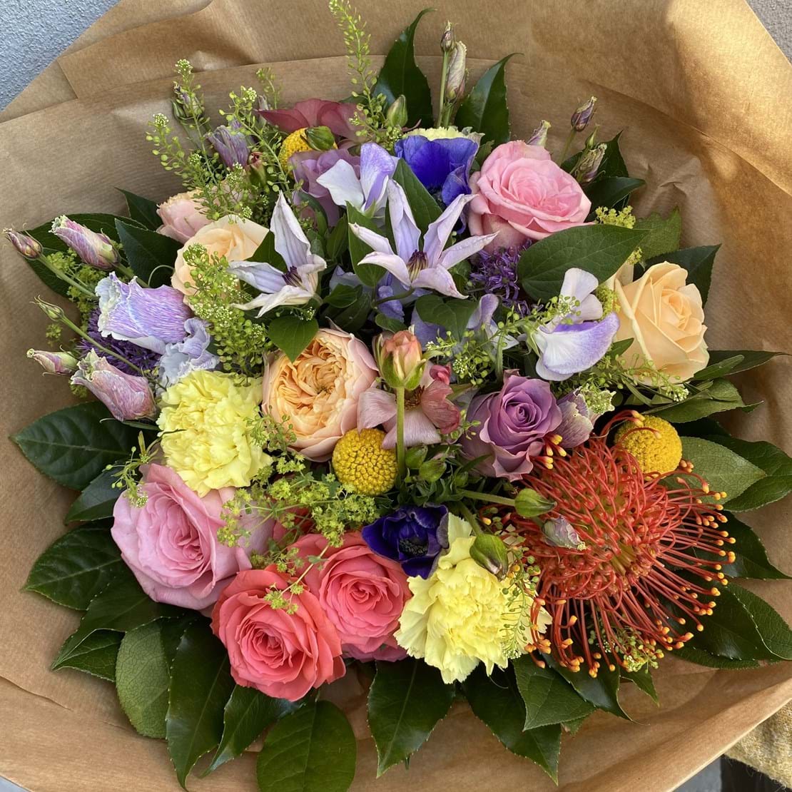 Glæd en, du holder af, med en skøn buket bundet af vores dygtige blomsterdekoratør, sammensat med et mix af årstidens smukkeste Farverige blomster. Du vælger selv størrelse.
