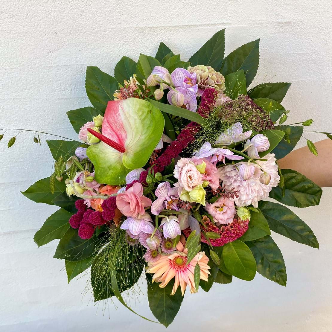 Glæd en, du holder af, med en lav buket med et vildt touch, bundet af vores dygtige blomsterdekoratør, sammensat med et mix af årstidens smukkeste blomster. Du vælger selv størrelse, ligesom du kan vælge farver/nuancer eller overlade farvevalget til os.